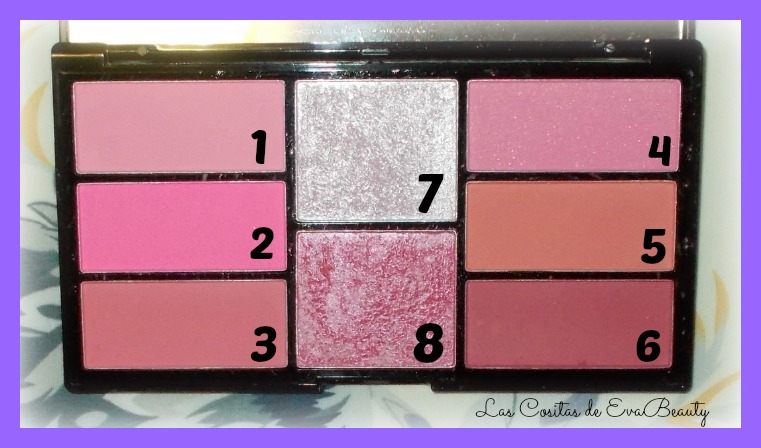 Como véis en las fotos, es una paleta de coloretes en tonos rosados, con la excepción del coral y el rojizo.