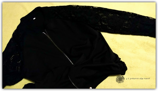 Cuando vi esta chaqueta me encantó desde el primer momento y cuando la recibí me gustó más. Es de tejido parecido a una sudadera y las mangas de encaje. Ahora mismo está agotada y no me extraña porque está muy bien. Costaba 10,32€, espero que la repongan, el link es este.