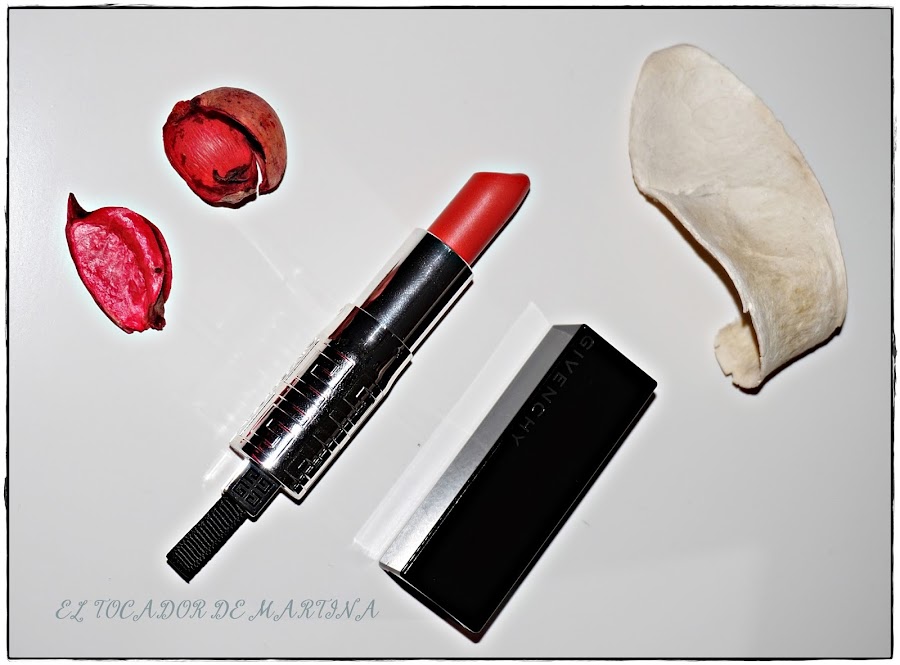 Continúo con los labiales, el más antiguo de los tres es el "Tempting Coral", de la gama Rouge Interdit de Givenchy, que compré a principios del verano, y que es esta maravilla: