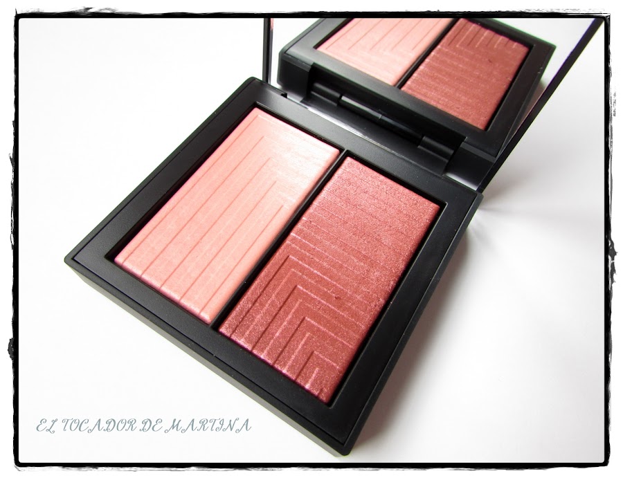 Vamos a empezar por el colorete; se trata del dúo Fervor de los dual-intensity de Nars, no tenía aun ninguno de estos, y me decidí a comprarlo porque encontré este tono en Fapex por 22,90 €, así que no me lo pensé dos veces y lo eché al carrito. Mirad que preciosidad de colorete: