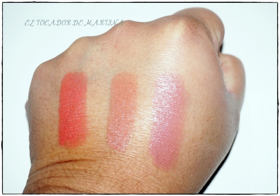 Para finalizar os enseño swatches de los tres labiales que os he enseñado: