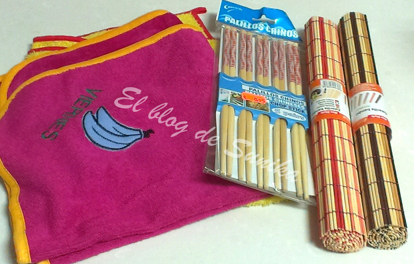 Para la casa también aproveché y me hice con unos nuevos paños de cocina, unos mantelitos chinos y palillos chinos. Nos gusta la comida oriental y casi todas las semanas un día cenamos este tipo de comida por lo que había ya que reponer.