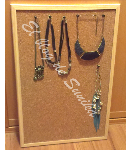 Una cosa que llevaba mucho tiempo dando vueltas en mi cabeza era como organizar mis collares para poder verlos y seleccionar cual ponerme en cada ocasión. Finalmente he comprado un corcho donde colocarlos. Además de práctico creo que queda muy bonito en la pared. He empezado a colocar ya algunos ¿A vosotras que os parece la idea?