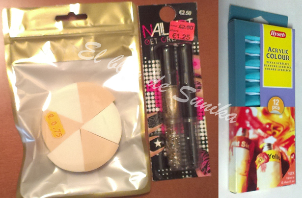 Las que me seguís ya sabéis que me he aficionado a esto del nail art así que me he comprado unas pinturas acrílicas para poder hacer dibujitos a mano alzada más fácilmente. Ya veremos que sale!!!.También he comprado unas esponjitas que me parecen perfectas para hacer degradados, a ver si me pongo a ello y consigo que me salga algo decente, jejeje. Y por último en Primak compre un set de laca de uñas y brillantitos en dorado y negro que me parecieron interesantes para alguna manicura estas fiestas.