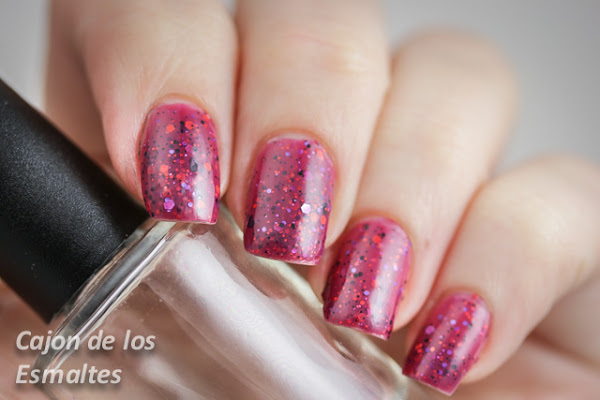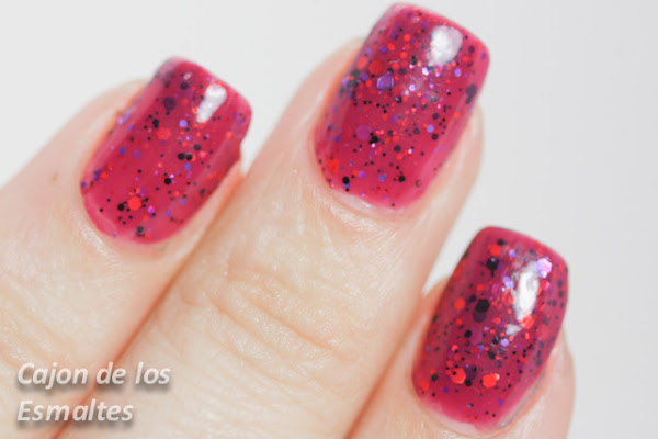 Y a continuación otro jelly sandwich, esta vez de la marca australiana más conocida, Emily de Molly: Baby"s got a temper. Un jelly color cereza con glitter negros, rojos y violetas con una fórmula preciosa, a pesar de la cantidad de glitter se desliza fácilmente sobre la uña. El mejor testimonio es la propia mani realizada a las corridas y con poquísima luz el propio domingo antes de irnos. Tengo varios Emily de Molly y la verdad que no decepcionan!