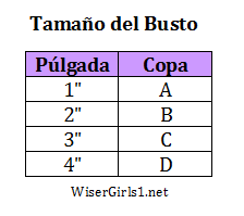 Cada púlgada de diferencia equivale a una copa. Mira la tabla a continuación:
