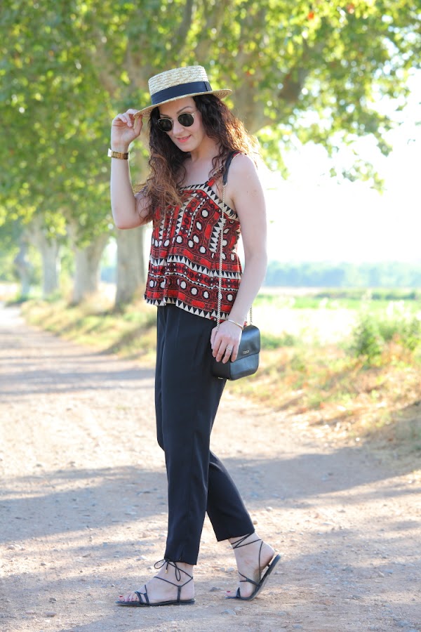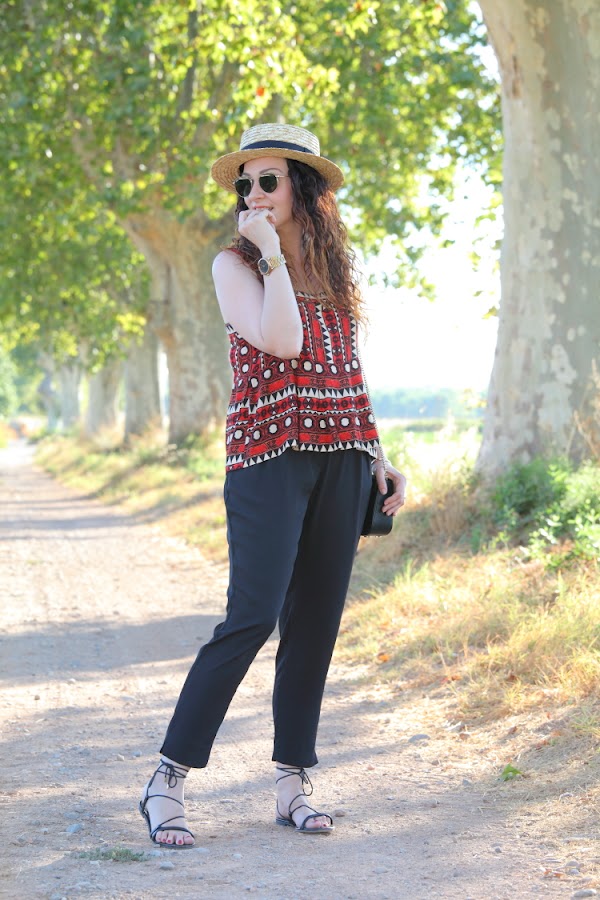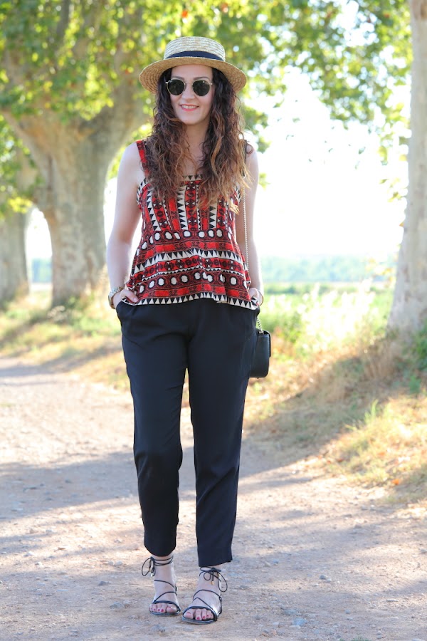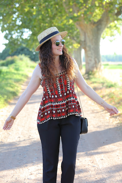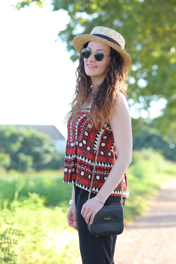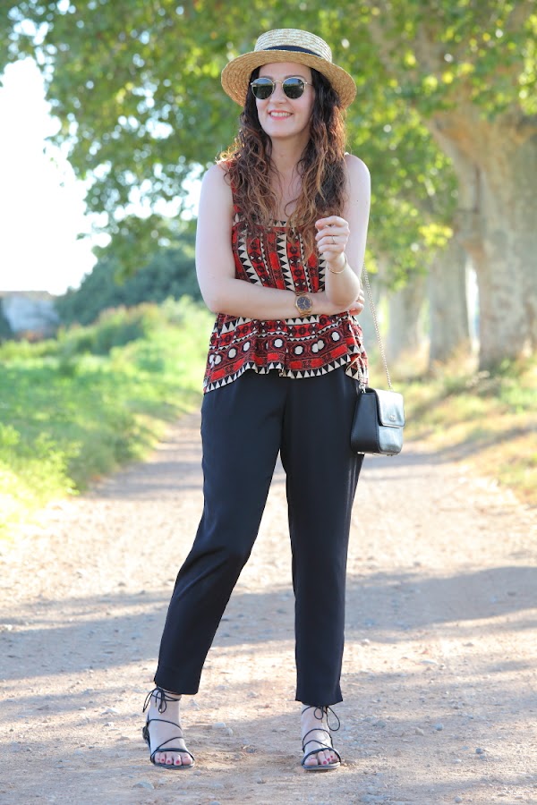 NOEMI - Top: H&M. Pantalones/Pants: Zara. Reloj/Watch: Michael Kors vía Ramiro Joyeros. Pulsera/Bracelet: Mango. Bolso/Bag: Tous. Sandalias/Sandals: Pull&Bear. Sombrero/Hat: Stradivarius.