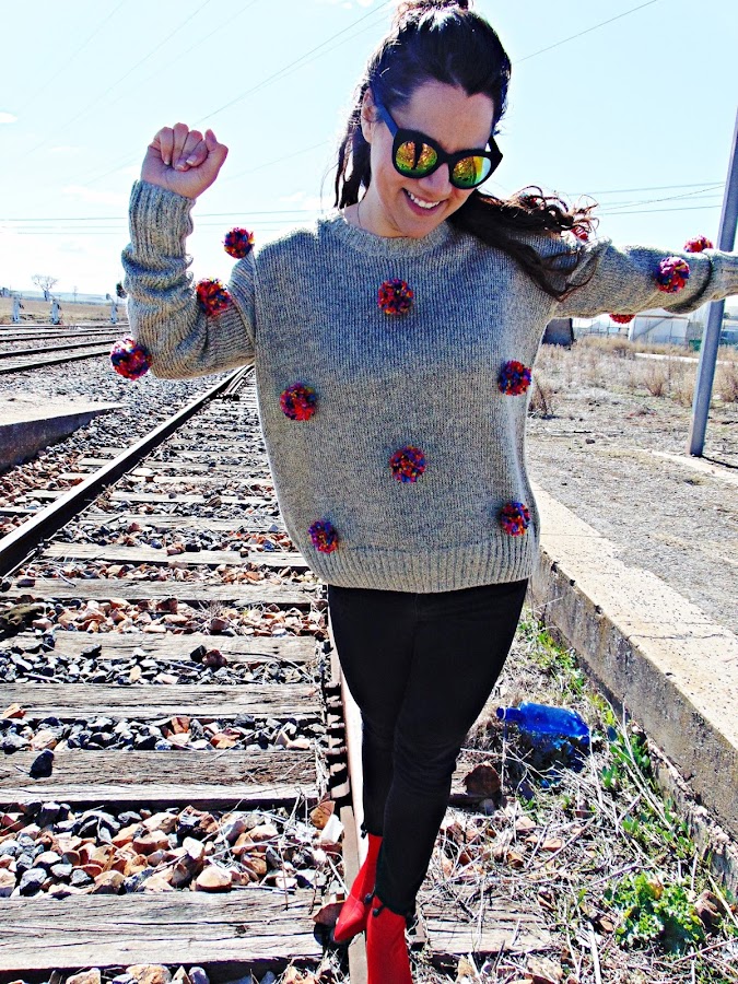 Lo que me gusta a mi un pompón no está escrito y que mejor que en un jersey.