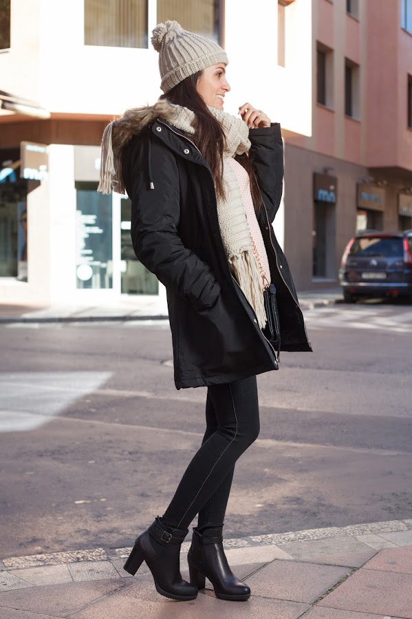 Empezamos semana con un look lleno de básicos, cómodo e ideal para las tardes/noches más frías con prendas de punto y una parka bien calentita... Estrenando outfit MORA BOTIGUES y unos preciosos botines de la nueva colección de DANGELA...