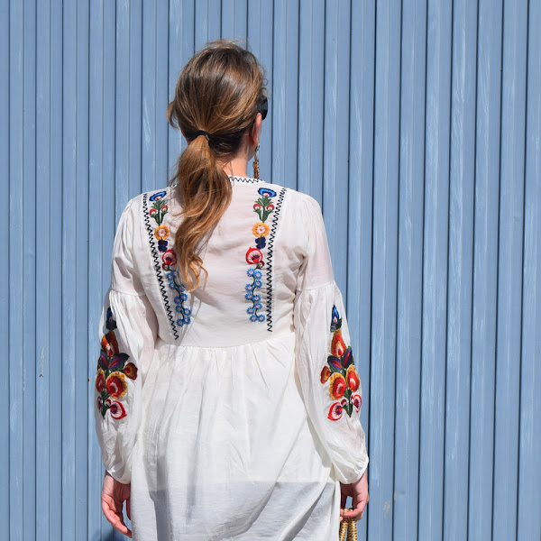 En realidad es un vestido de Zaful; Lo malo que es tan transparente que solo es apto para utilizar como blusón o bien para bajar a la playa. Eso si, los bordados son sencillamente perfectos. Así es que la solución que se me ha ocurrido para llevarlo como vestido, es poner otro debajo, un tipo camiseta del largo de este y listo. Y con botas altas este otoño tampoco quedará mal, seguro!