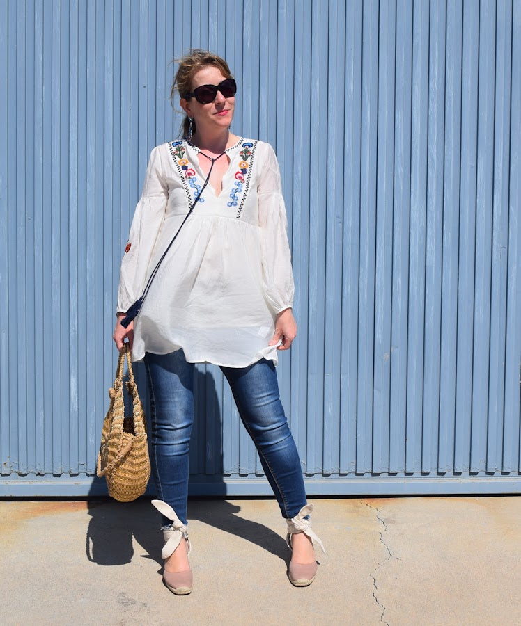 Estar inmersos en la rutina hace que muchos días tenga que ir corriendo para llegar a todo. Esta semana me ha faltado pulir los post, pero no quiero faltar a mi cita con un nuevo look. La idea era haber sacado esta blusa con un bikini en la playa; los exámenes, el inicio del cole...hicieron que no diera tiempo para más, por lo que decidí llevarlo como prenda de calle.