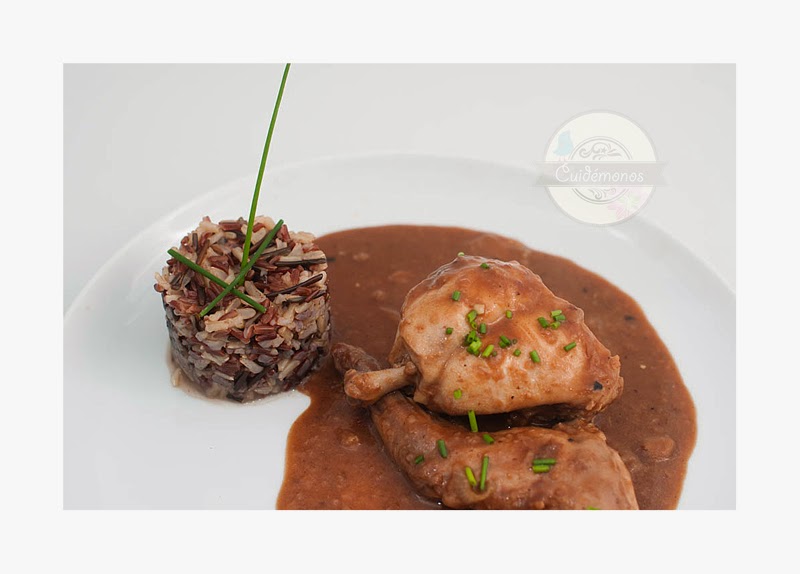 Para los que no conozcáis la combinación de conejo con chocolate deciros que está de rechupete, no os parezca extraño porque no queda dulce ni con sabor a chocolate, sino que le da una profundidad, color y cuerpo impresionante a la salsa. También es perfecta para otras carnes de caza como pueden ser la perdiz, codorniz, liebre, etc. Y podéis añadir setas a la salsa, está estupenda con níscalos o con la mezcla de setas de la que ya os he hablado aquí.