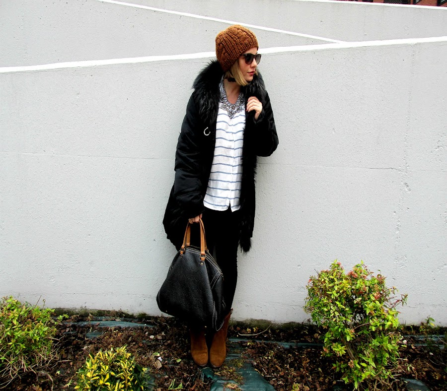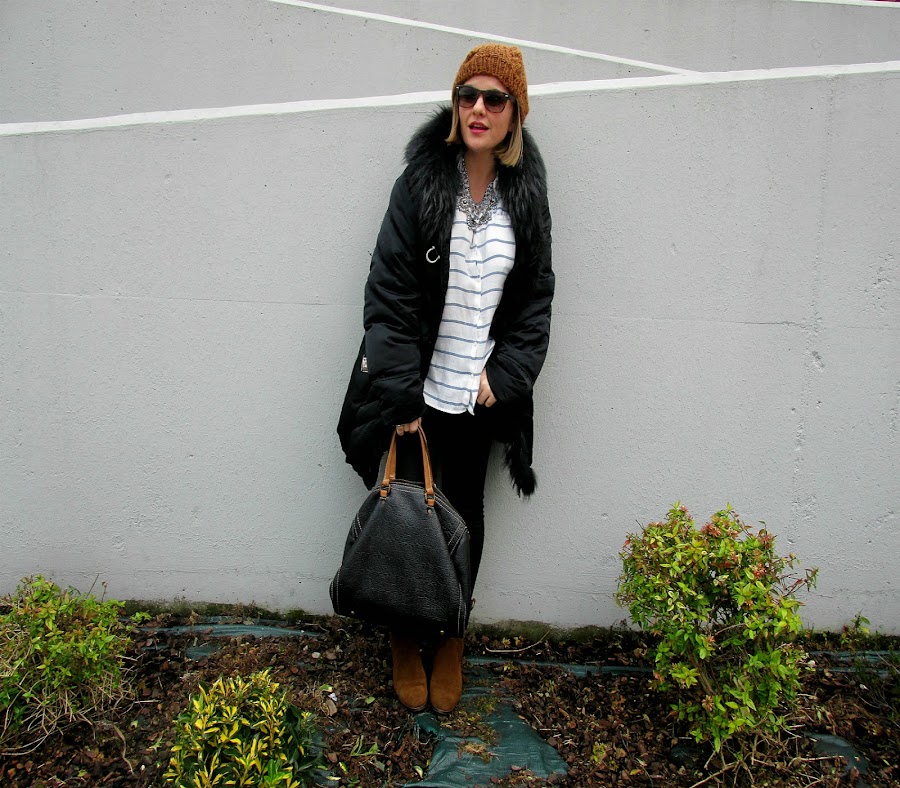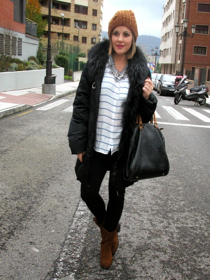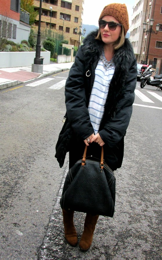 Lluvía, frío y una mañana por delante llena de recados navideños. Así se presentó mi día de ayer, con lo cual mi look tenía que ser cómodo para lo que me esperaba, además contando que no acabo de quitarme el catarro también tocaba abrigarse. Para eso suelo recurrir a mi plumas favorito, no pesa nada y abriga un montón. El resto muy sencillo, botas cómodas de estilo campero y a recorrer la calle.