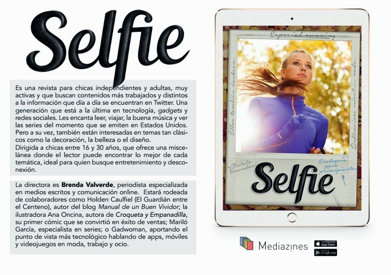 Revista Selfie: la revista de tendencias. Para chicas independientes de nueva generación, que están a la última en tecnología, gadgets y redes sociales; descubre sitios dónde viajar, las mejores series del momento y entra en el mundo del vino con la enología para principiante.
