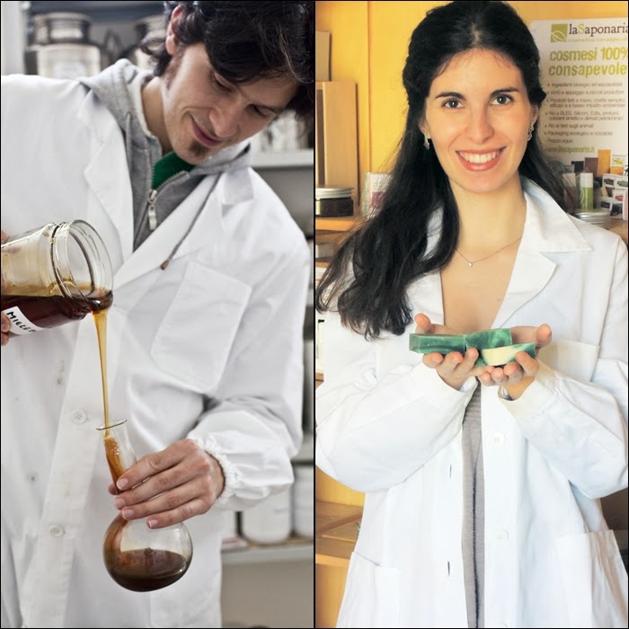 Luigi y Lucía Este pequeño laboratorio artesanal ecobio, "La Saponaria", se encuentra en el Centro de Italia. Fué fundado por Luigi y Lucía, amantes de lo artesanal y casero, respetuosos con el medio ambiente y los animales, y, que les encantan las tradiciones de la abuela.
