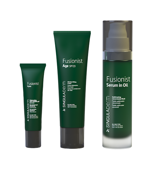 Singuladerm Fusionist es la primera línea de la firma que une naturaleza y ciencia para luchar contras los signos de la edad. Se trata de una nueva visión de la cosmética basada en innovación biotecnológica de última generación y totalmente respetuosa con el medioambiente. Esto es posible gracias a la obtención de las moléculas más eficaces y evolucionadas del planeta para la protección y el cuidado de la piel.