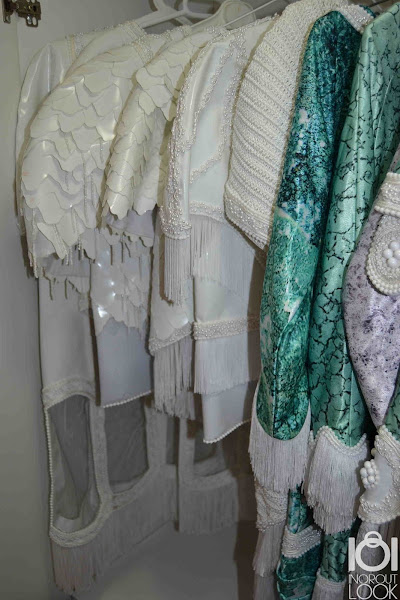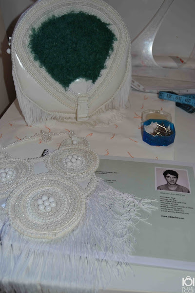 En Symbiosis predomina el color blanco, el turquesa y diferentes tonos de gris y azul en tonos suaves con 8 piezas de vestidos por encima de la rodilla para la mujer y 5 chaquetas unisex tanto para hombre como para mujer.