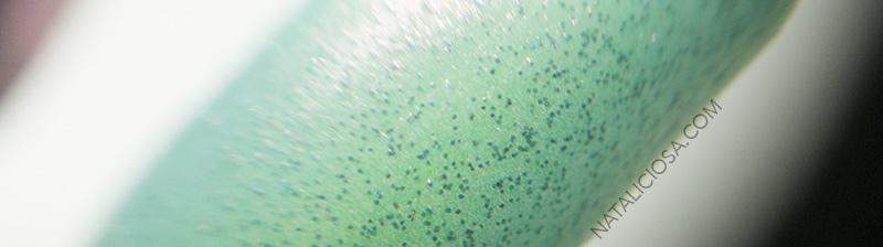A lo que iba: este tono turquesa es de cobertura muy baja, de acabado jelly (vamos, como una gelatina, transparente pero con color) y está plagado, como habréis captado nada más ver las imágenes, de partículas iridescentes. Me parece un esmalte que puede dar mucho juego como topper, para hacer manicuras artísticas como esta inspirada en el signo del zodiaco Cáncer, o variaciones en los acabados de otros esmaltes. Os enseño en las fotografías cómo queda él sobre esmalte blanco y sobre negro, siendo este último el que hace un efecto mágico que todavía me deja perpleja, ¡le ha cambiado el color! ¡En qué momento ocurrió esto!