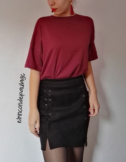 Esta falda me gusto mucho cuando la ví, tiene el detalle de ir cruzado en los laterales y tenía muchas ganas de una falda negra, ya que no tenía. La calidad es muy buena y la tela es imitando a terciopelo.