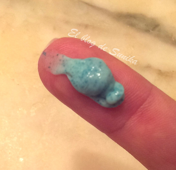 Como veis es de color azul, cosa que me sorprendió la primera vez, generalmente los que he usado son de color blanco. Me ha gustado mucho, hace una exfoliación muy suave pero mi piel es gruesa y grasa y pide una exfoliación con grano más gordo pero este lo veo muy adecuado para la gente que tenga la piel delicada o sensible.