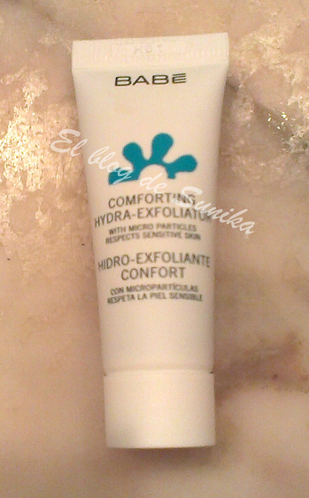 Luego tenemos la Hidro-exfoliante Confort. Es un exfoliante muy suave que no irrita nada la piel, lo veo muy indicado para pieles sensibles. Tiene una micropartículas extrafinas que son las que realizan el peeling de forma muy suave. Otro punto muy interesante de este exfoliante es que tiene aceite de jojoba por lo que al mismo tiempo que realiza el peeling hidrata la piel. También contiene ácido salicílico que realiza un efecto peeling sin agredir la piel.