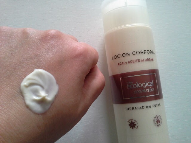 Esta loción corporal tiene una textura cremosa pero bastante fluida y ligera, por lo que se extiende y absorbe fácilmente sin dejar sensación grasa ni pegajosa en la piel.