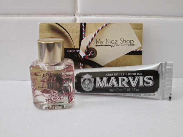 Los dos primeros mini productos que os enseño, se tratan de una colonia de la marca "Lollia" y una mini pasta de dientes de la marca "Marvis", que tenía muchísimas ganas de probar.