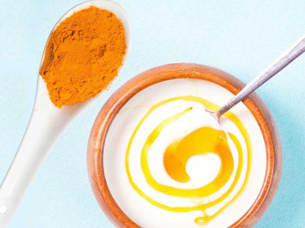 La cúrcuma es una especia oriental muy famosa por sus propiedades antioxidantes que es fácil de conseguir en polvo en tiendas naturistas o supermercados, y el yogurt o los lácteos en sí contienen ácido láctico lo cual ayuda a remover manchas en la piel.
