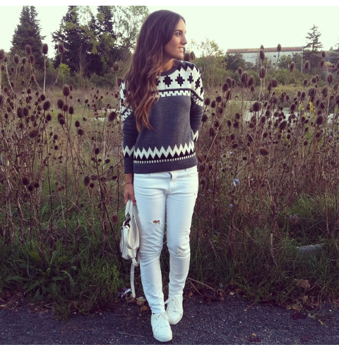 Así para looks de jerseys con cenefas, le mostramos estos dos looks de Silvia, uno más formal que otro, donde se muestra que sabiendo combinar esta prenda podemos hacer looks de tendencia actual.