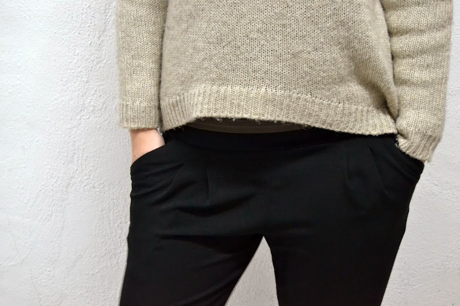 Yo, he decidido colocarla en una base clara con unos pantalones de pinzas, y unos mocasines de charol en negro. Y aquí podéis ver el resultado.