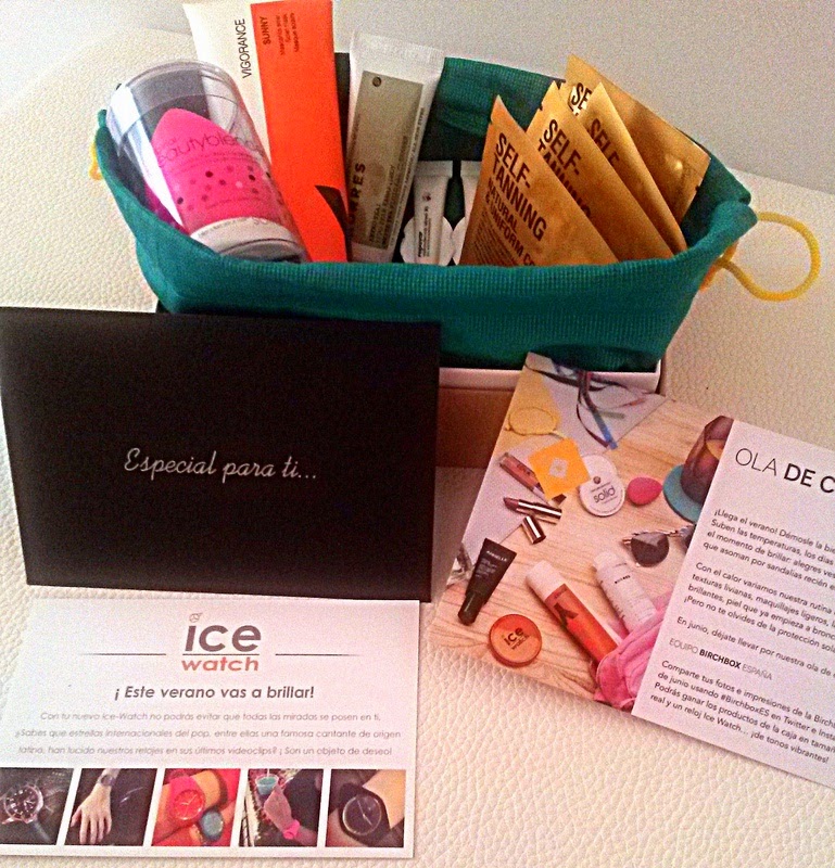 ¿Qué os parece el contenido de la cajita de este mes?¡No me digáis que no es ideal para ir preparándonos para el verano!