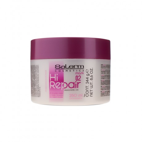 Mascarilla Hi Repair de SALERM COSMETICS: El hidrolizado de queratina y la proteína de la seda reparan la fibra capilar, para una melena reparada, suave y sin residuos grasos.