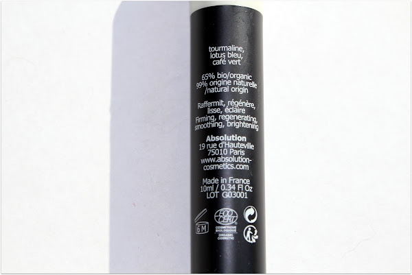 Se trata del Le Soin Regard de Absolution, una marca francesa galardonada con cinco premios internacionales en cosmética. Sus productos son orgánicos y fabricados según procesos que reducen el impacto medioambiental. Además donan el 2% de sus beneficios a una organización sin ánimo de lucro.