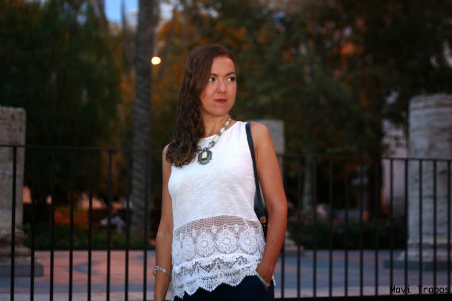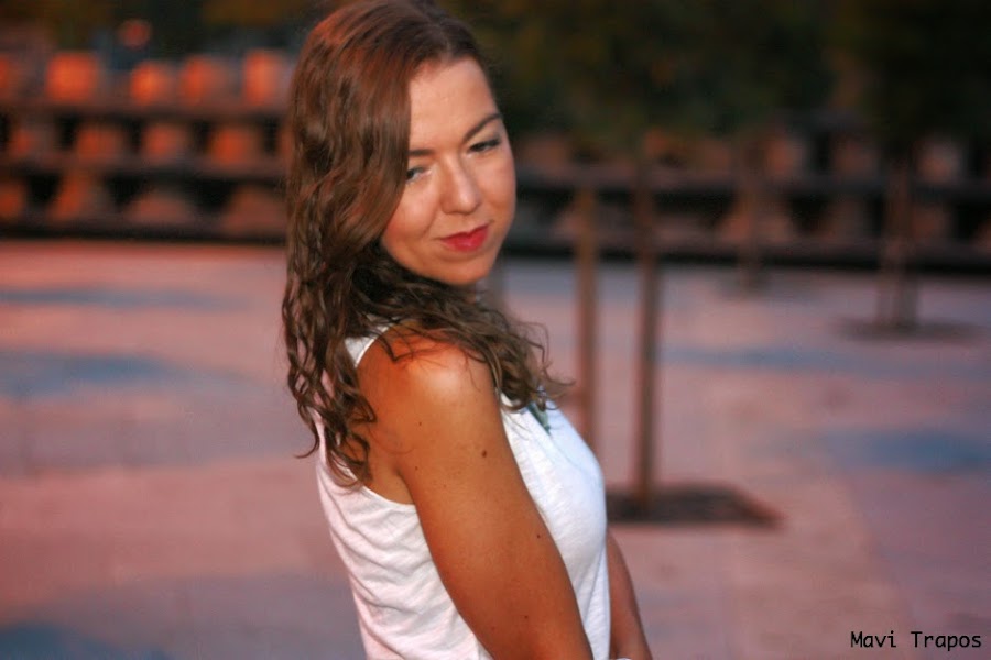 Aprovechando que llevaba un look de contrastes, antes de acudir hicimos esta pequeña sesión a la luz del ocaso, entre edificios de mi ciudad y en un parque de la misma.