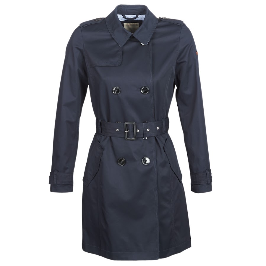 Gabardina: Esta de la marca Esprit nos ha encantado. El color marino es muy acertado ya que combina con todo y no pasa de moda. Puedes llevarla con falda, pantalón o traje y es una prenda sumamente versátil. De venta en Spartoo. Precio: 99,99 €