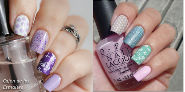 Meñique y dedo gordo: Sally Hansen Lacey LilacLa técnica es un clásico mix"n"match, que no es cuestión de tirar sin criterio colores, terminaciones y nailarts, no señor. Un buen mix"n"match tiene un hilo común que te lleva de uña en uña y uno malo es un cambalache. Y este es de los buenos, lo digo con toda la humildad que da el haber copiado el diseño :)