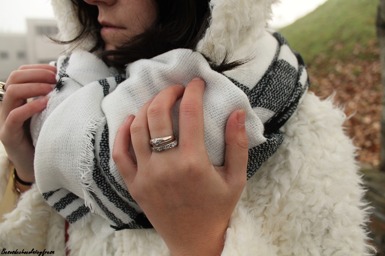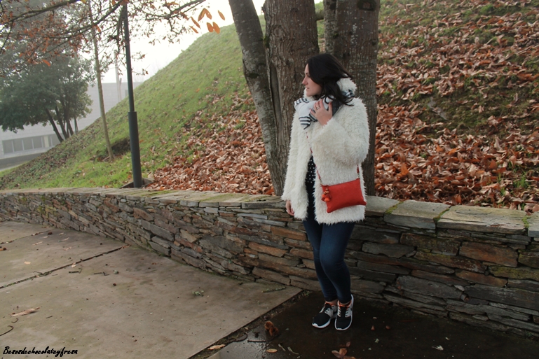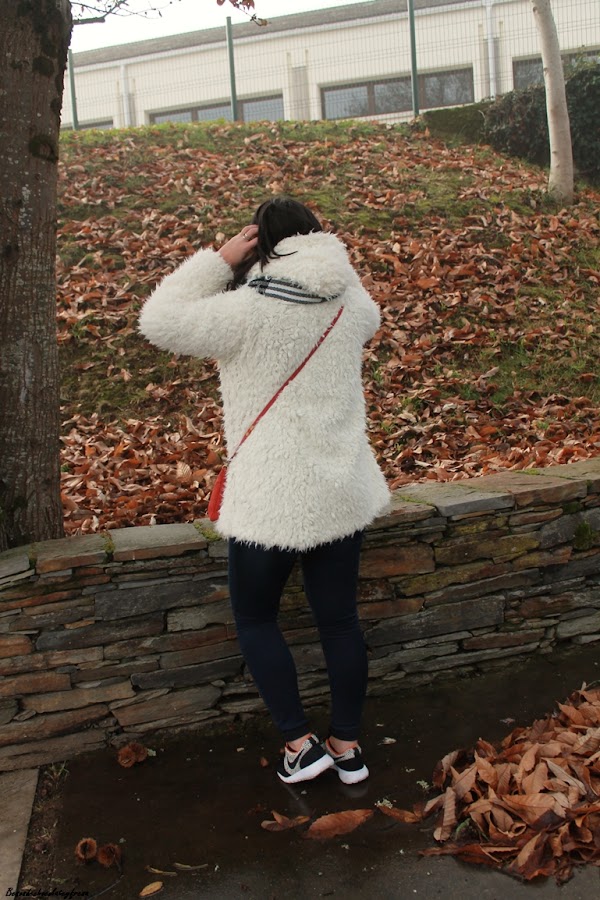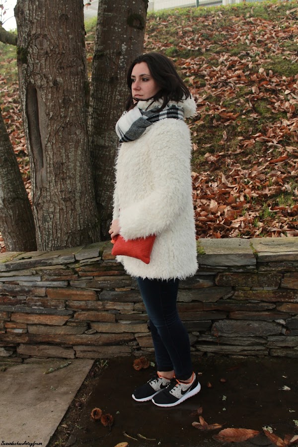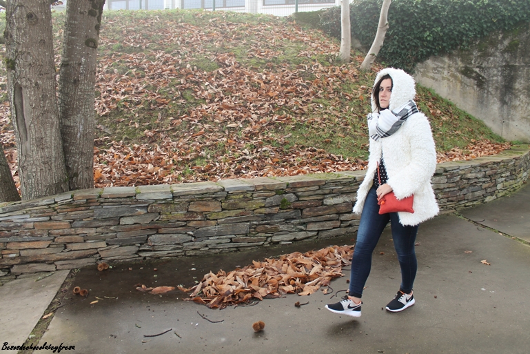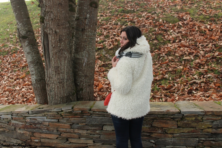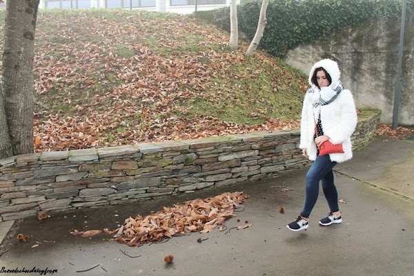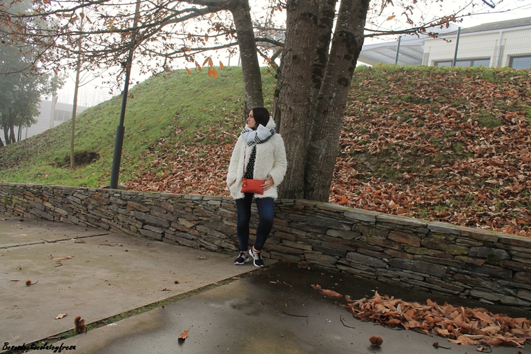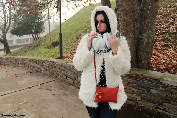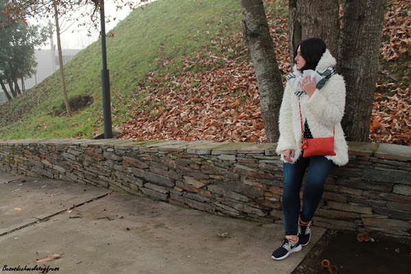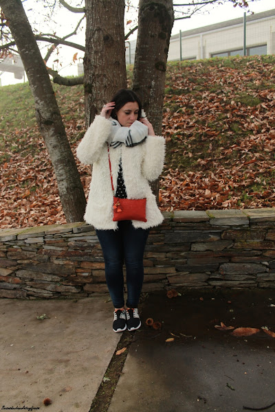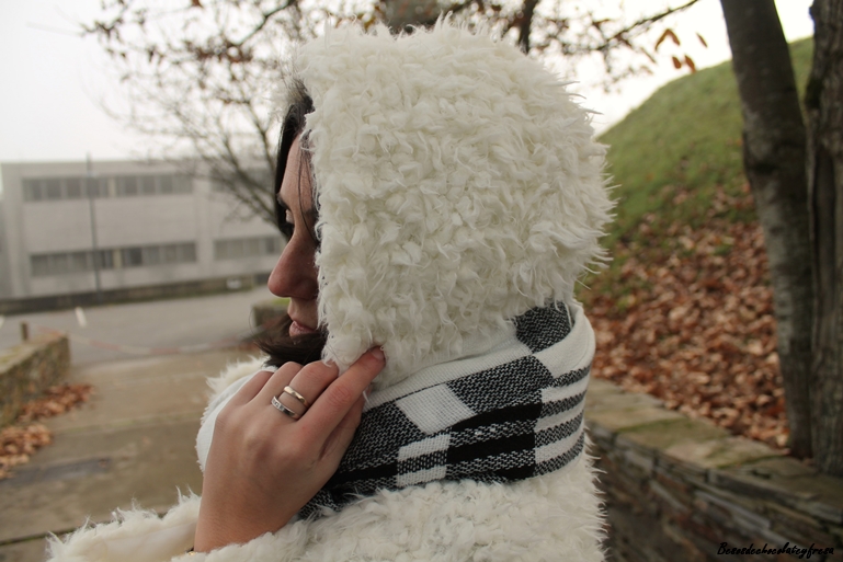 El look de hoy es de esos típicos días de invierno en que caen las nieblas y no levantan y para ello voy apropiada con mi nuevo abrigo de peluche blanco a lo copito de nieve que me quita mucho frío y mucho apuro este invierno. También estreno bufamanta en tonos blancos y negros, versátil para cualquier outfit.
