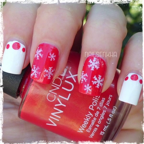 *Cuando este sexo en las uñas rojas estampamos copos de nieve y en el blanco hacemos unos puntos.