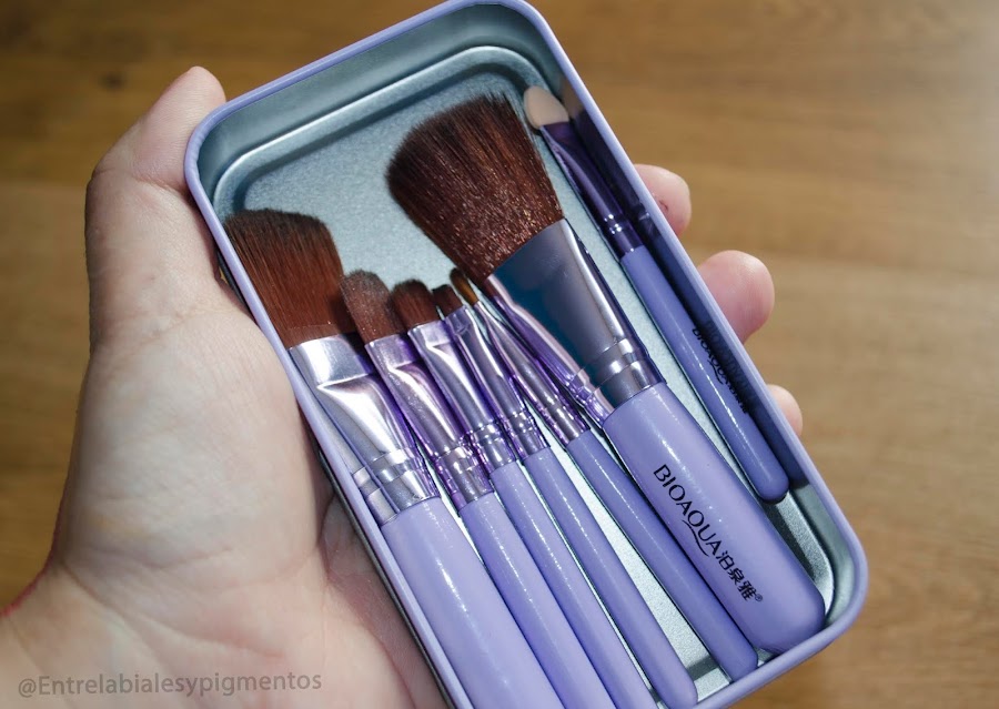 Cajita de brochas para viaje de la marca Bioaqua:Esta marca es coreana, las brochitas son de tamaño de viaje, pelo sintético y muy apañadas. Lo único que echo de menos una brochita para difuminar sombras. Por el resto no pinchan ni destiñen. ¡Además no me digáis que la caja no es mona!