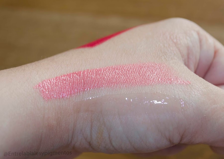 Labial líquido 24 horas de W7:Bueno bueno, lo de este labial es de otro planeta. Os podéis creer que he hice los swatches por la mañana sobre las 10 am y ahora mismo (17:29) sigue intacto en mi mano? Pero es que me he lavado las manos, luego con jabon Fairy, después me he puesto aceite de coco a ver si se iba y NO se ha quitado. De hecho en stories os lo enseñé y lo pondré en destacados para que lo podáis ver porque es una pasada lo que aguanta. Bueno y en el labio aguanta lo mismo, porque me lo he puesto y he comido, he bebido, he besado y aguanta lo más grande. El tono es como rosita coral perlado PRE-CI-O-SO. Una parte contiene el labial y la otra el gloss.