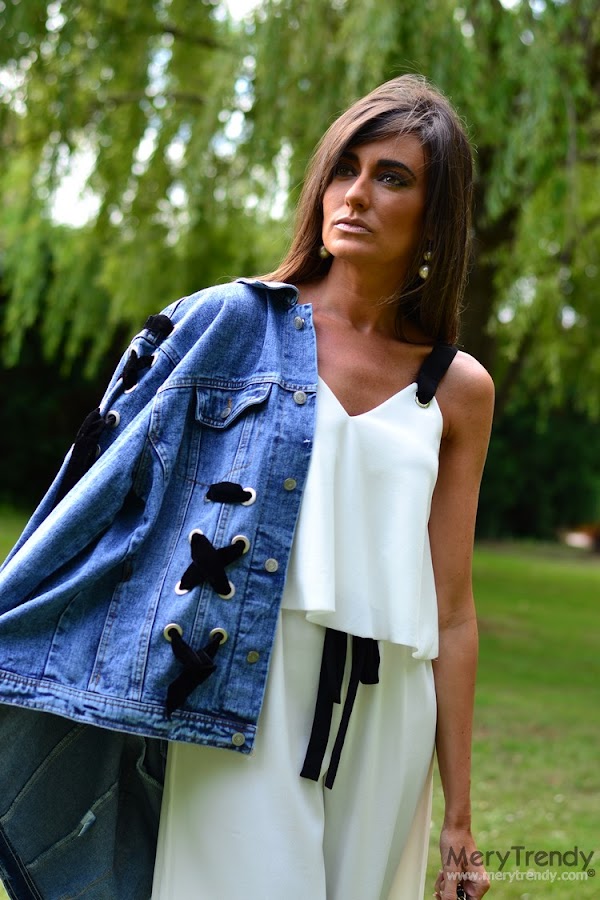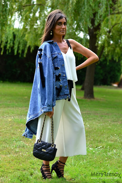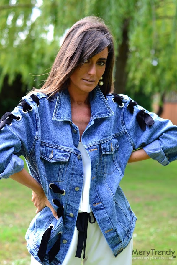 Para poner por encima de los hombros por si refresca, una cazadora vaquera de estilo vintage, tipo boyfriend. Ya sabéis de mi debilidad por las chaquetas denim oversize... No es la primera ni tampoco la última que me veréis este verano... Jijiji.