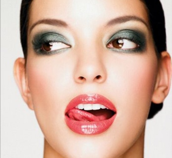Aquí tenéis un ejemplo de maquillaje en ojos saltones, pero no le favorece mucho la forma de la sombra. Si la prominencia de los ojos ya los redondea si lo remarcamos con una sombra con contornos redondeados se marcará aún más la prominencia de los ojos, aunque utilicemos sombras oscuras o ahumados. Creo que se ve claramente como la forma de la sombra y el color de dentro de la línea del ojo en claro remarca aún más los tipos de ojos de esta chica saltones...