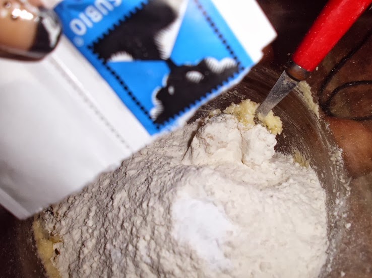 Añade la harina con la soda El Vesubio y el cacao en polvo. Mezcla bien y termina añadiendo la leche.