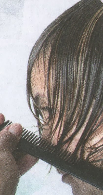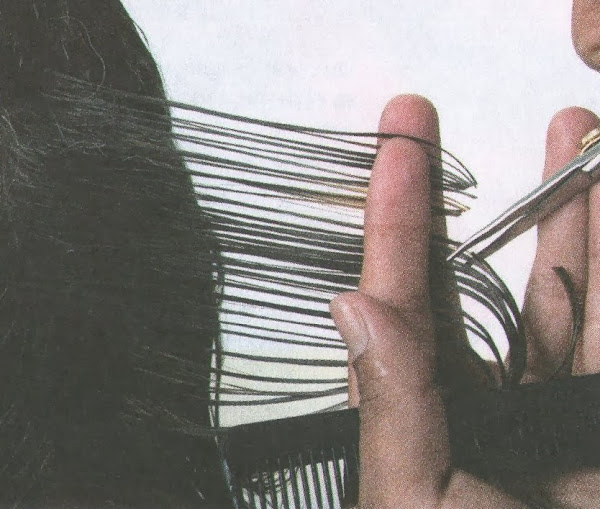 5-En la segunda división cortar el cabello del tamaño de la mecha guía de la parte de la nuca baja, el corte se hace en forma recta y con tijera de filo navaja.