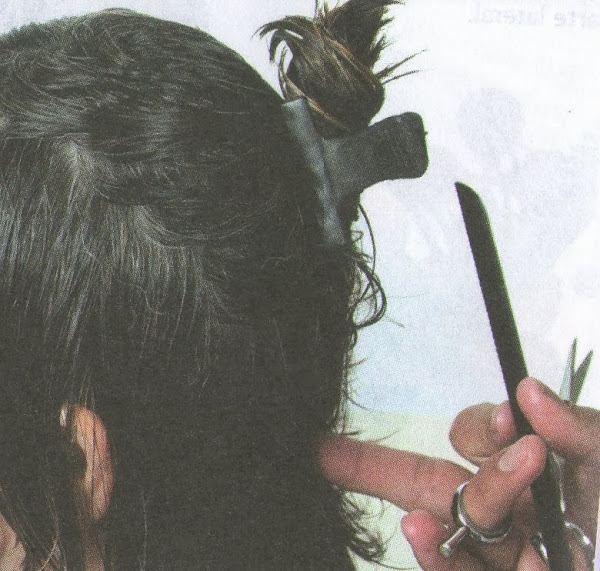 6-Se corta el cabello siguiendo el tamaño de la mecha guía de la parte de atrás.