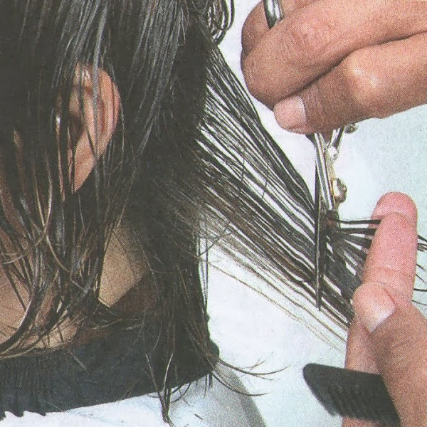 10-Empezar a acortar el cabello con la tijera de filo navaja, de medios a puntas para darle el estilo despuntado, empezar por la nuca baja y llevarlo hacia los laterales.