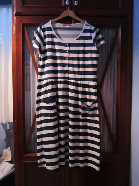Y lo segundo, fue este maravilloso vestido marinero. La verdad que me tiene enamorada, su corte es muy básico y tiene la cintura marcada alta.