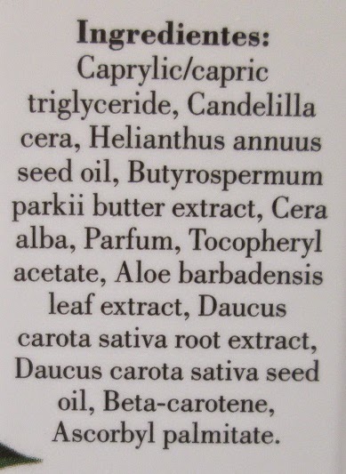 Tiene un sutil y suave aroma a naranja, que casi no se aprecia, pero la verdad, es que es un bálsamo de labios que me ha gustado muchísimo. Es rico en aceite esencial de naranja, cera de candelilla, cera alba, extracto de aloe vera, entre otros.