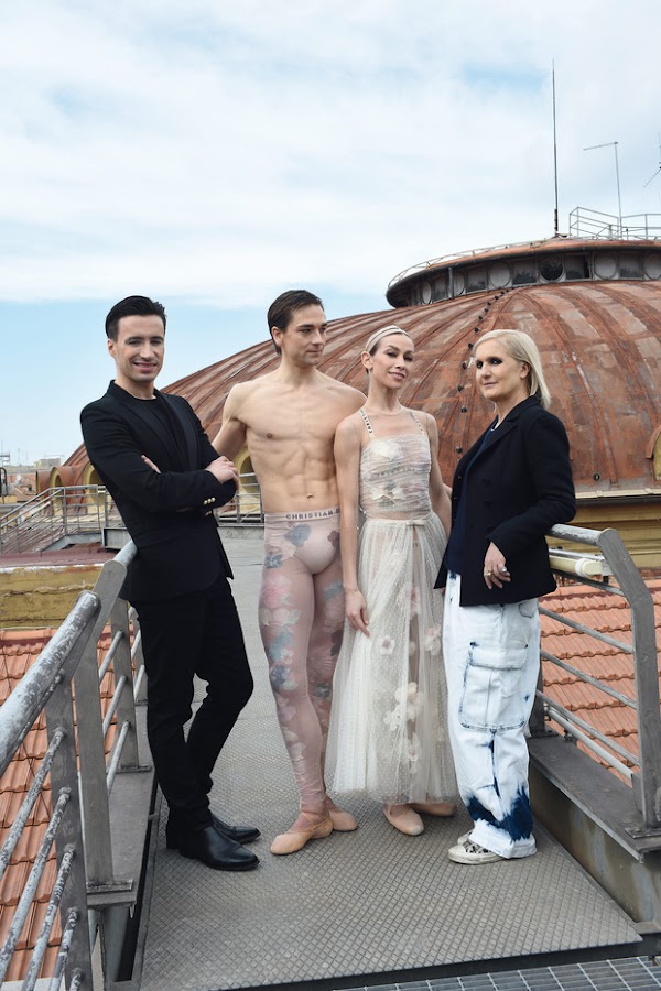 La influencer ChiaraFerragni que acudió a la representación con un maravilloso vestido de Dior, junto a la diseñadora y los bailarines.