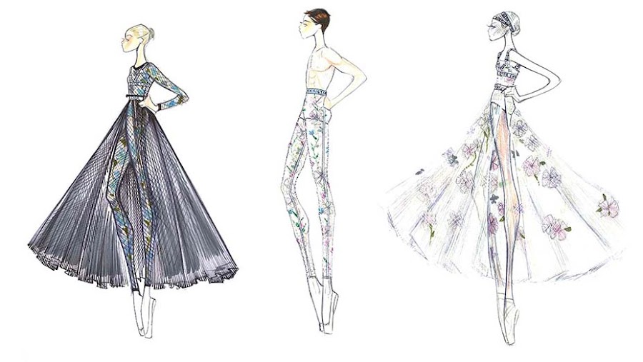 Para esta obra, la diseñadora de la casa francesa Dior ha creado dieciséis trajes para los bailarines. Se han diseñado unos trajes con flores y tules muy en la linea de la ultima colección.